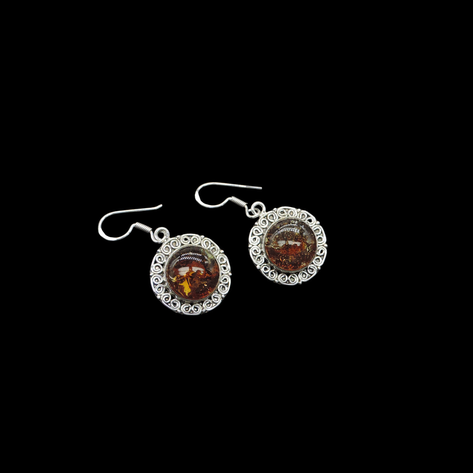 Be the first to review “925 Sterling Silver Amber Round Scrollwork Border Earrings” Cancel reply