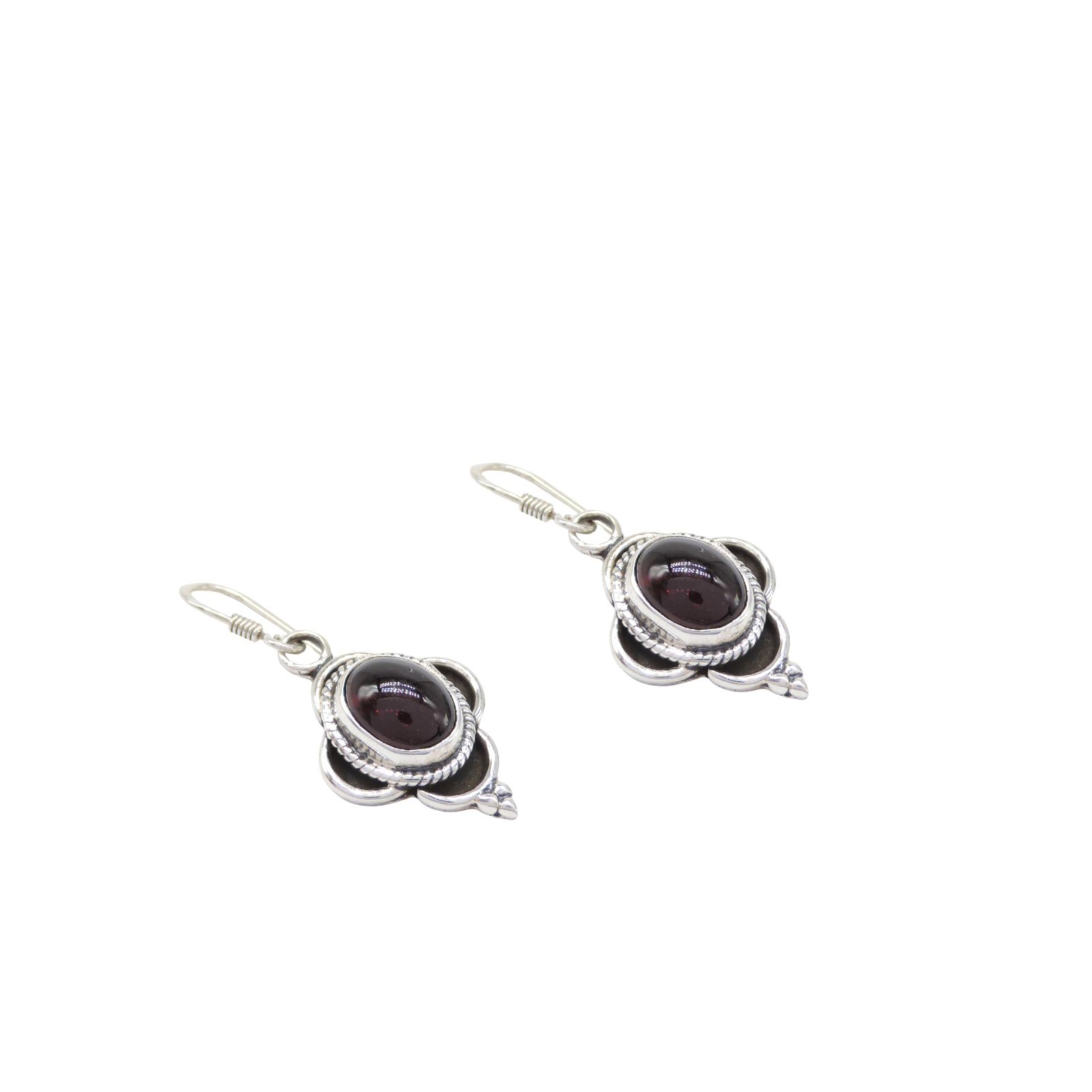 925 Sterling Silver Garnet Oval Floral Rope Bezel Earrings