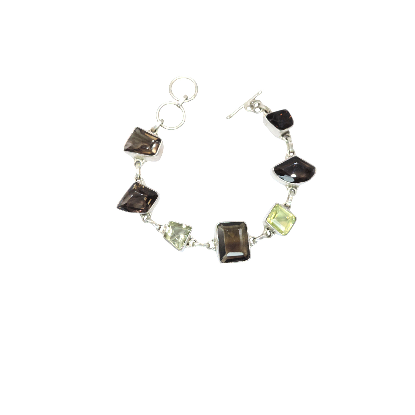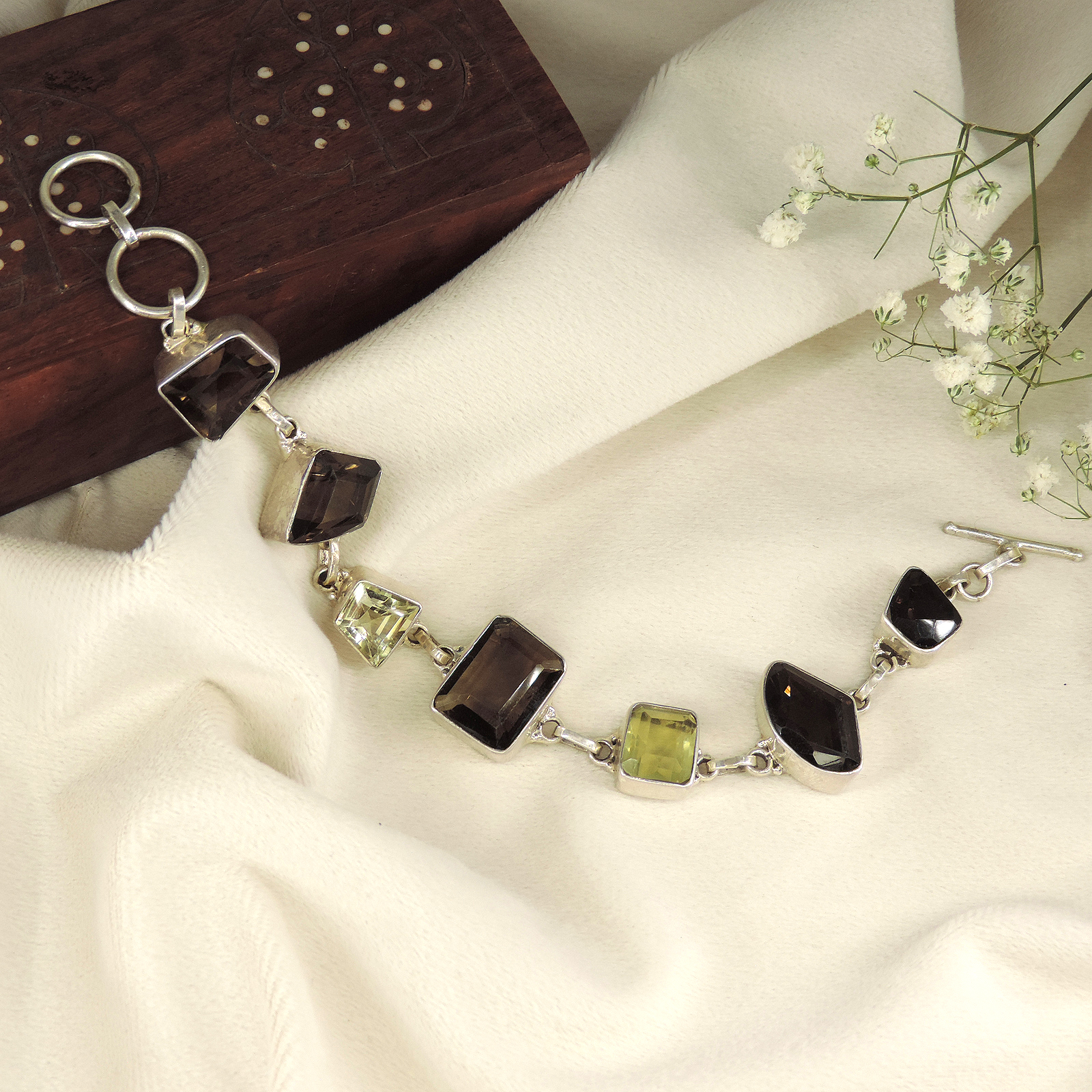 925 Sterling Silver Smoky Quartz Citrine Multi-Shape Link Bracelet