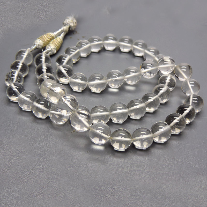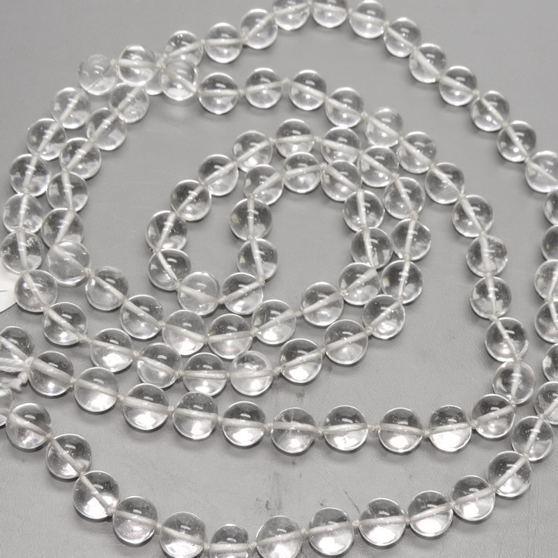 | Stone | Clear quartz, round bead cut, hand-knotted |